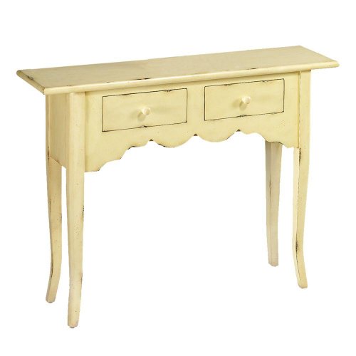 Add French-inspired flair to your home decor with the Emily Console Table. Expertly crafted from wood in an antiqued finish, this no-fuss table features storage and is the perfect way to display your home accents. Crafted of wood for years of lasting beauty. A distressed finish will add a touch of vintage-inspired charm to any space. Actual size is 34"Hx44"W